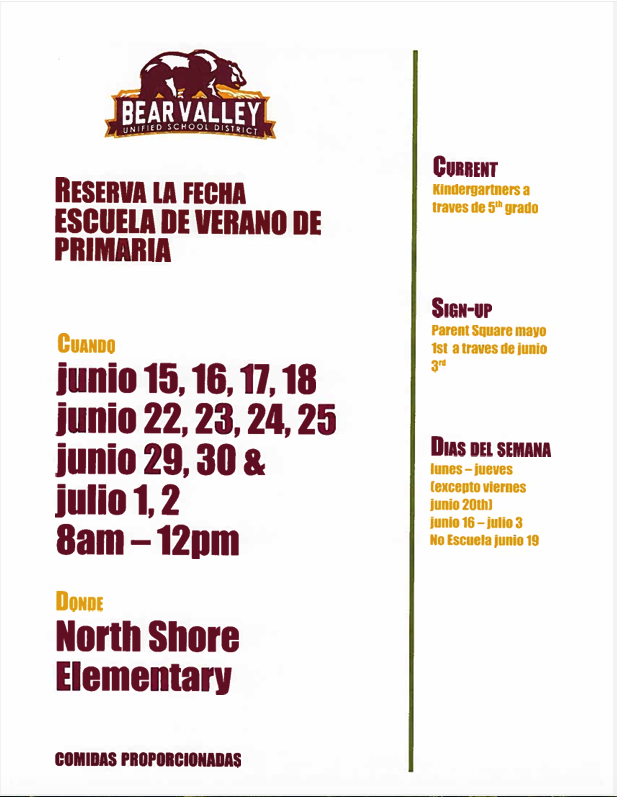 Please see the following dates for our Elementary Summer School: